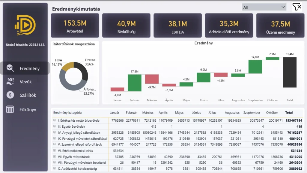 Az adatmodellezés során arra törekszem, hogy a háttérben egyszerű és stabil alap maradjon, még összetett folyamatok esetén is. A tapasztalatom szerint a legnagyobb értéket gyakran a tiszta adatminőség és a jól felépített alapstruktúra szolgáltatja. Ez biztosítja a skálázhatóságot és a hosszú távú megbízhatóságot: egy jól megtervezett riport évekig, közel valós időben képes követni az adatokat – szinte beavatkozás nélkül.