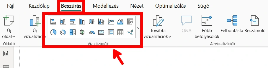 Nyisd meg a Power BI-t, elvileg úgy látod a felületet, hogy a jobb oldali sávban vannak a vizualizációkat. Ezen változtatunk most: